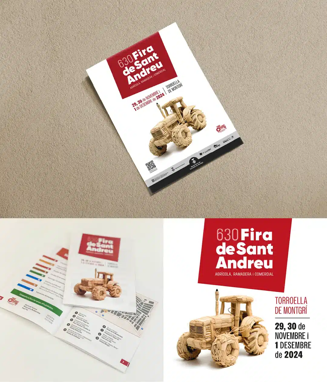 La gràfica consolida una línia visual que posa en valor els orígens agrícoles, ramaders i comercials de la Fira de Sant Andreu, reforçant la seva identitat i la seva relació amb el territori.